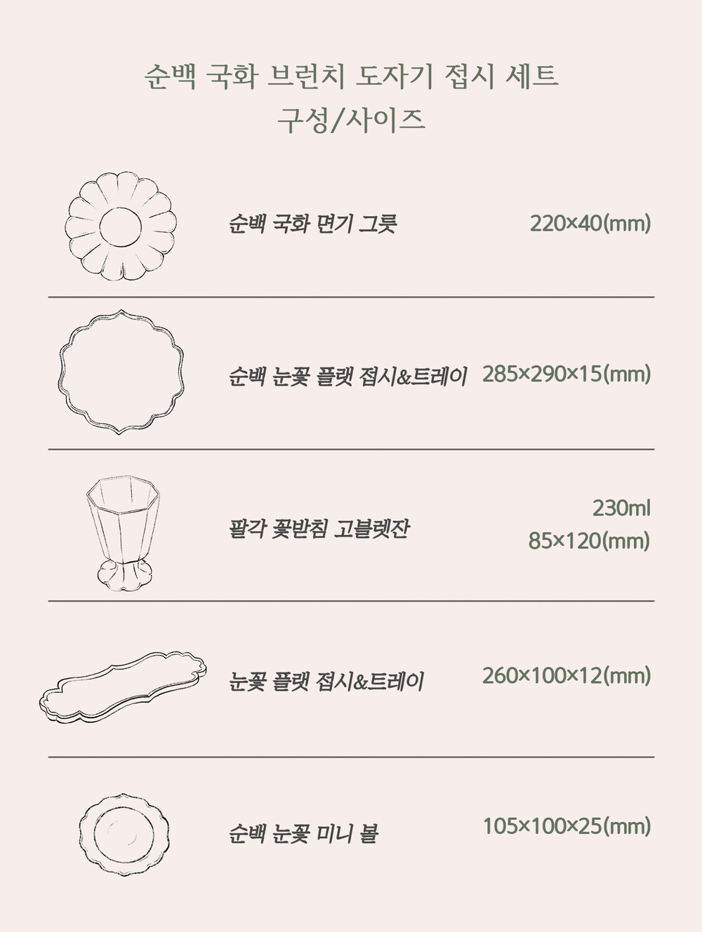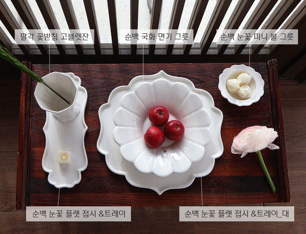 순백 국화 브런치 도자시 접시 세트