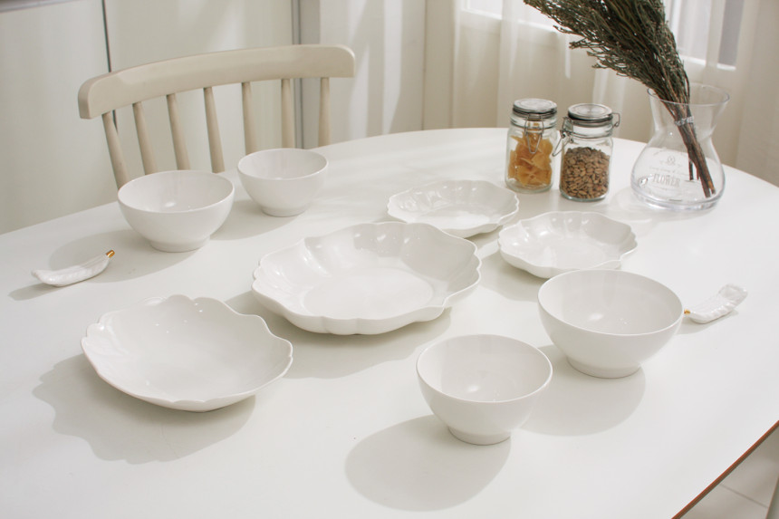 순백 눈꽃 도자기 접시 2인 세트 10p